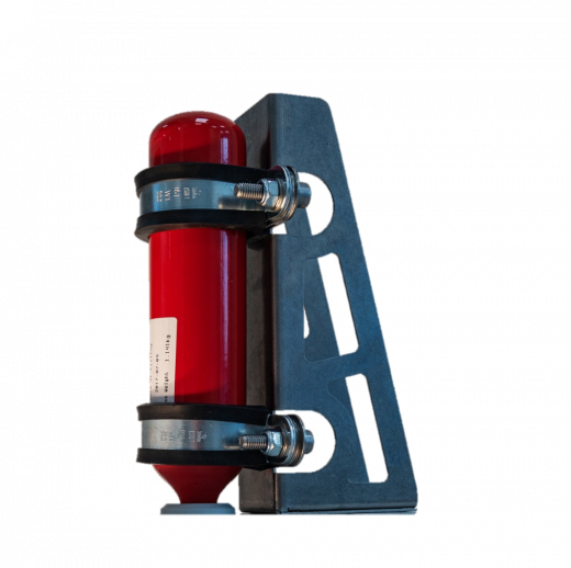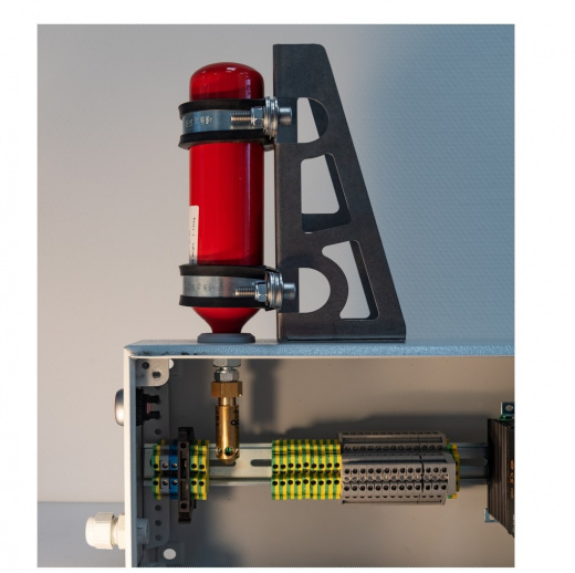 Um die stabile sowie tragfähige Halterung der AMFE im zu schützenden Gerät zu gewährleisten wird der L-Halter empfohlen. Mit Hilfe des L-Halters kann die Löschmittelflasche der AMFE außerhalb des Gehäuses montiert werden, ausschließlich der Auslösekopf muss im zu schützenden Gerät sein.